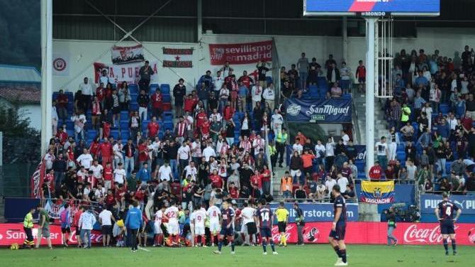 Al menos dos de ellos, un hombre y una mujer, necesitaron su traslado en camilla desde la zona donde cedió la valla en el minuto 59 del partido que disputaban el Eibar y el Sevilla y que se saldó con triunfo visitante por 1-3.