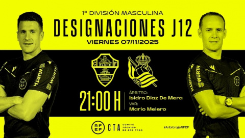 El árbitro del Comité de Castilla-La Mancha Isidro Díaz de Mera dirigirá este viernes el partido de la duodécima jornada de LaLiga EA Sports [...] Leer más...