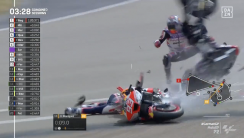 EFE/IUSPORTMárquez se cayó en la primera clasificación en la curva de entrada a meta, regresó corriendo a su taller para conseguir la segunda moto y [...] Leer más...