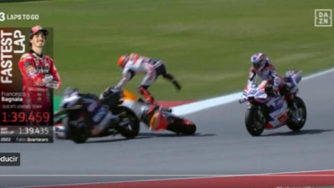 En la curva tres de la tercera vuelta, Marquez intentó adelantar por el interior a Jorge Martín, pero se fue largo y embistió al portugués [...] Leer más...